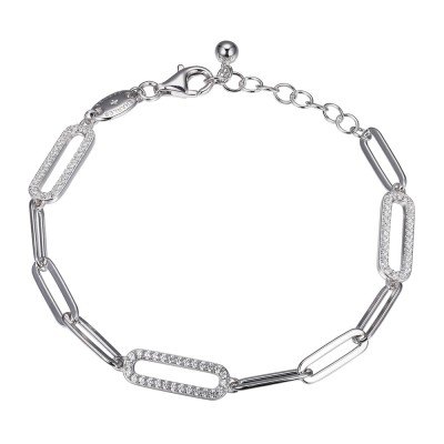 SS RHOD-FINISH PAPERCLIP CHAIN W/ 3 SPACED CZ LINK