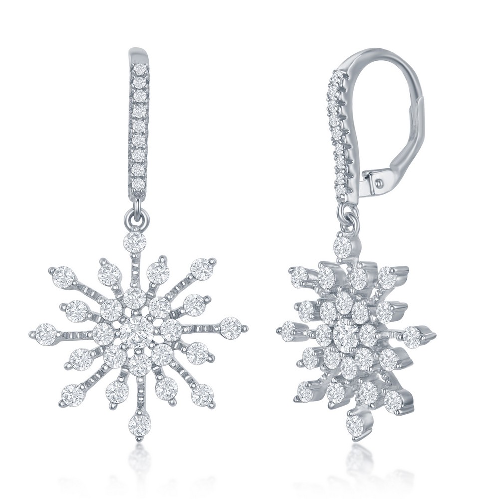 SS CZ LEVER-BACK SNOWFLAKE DROP EARRINGS