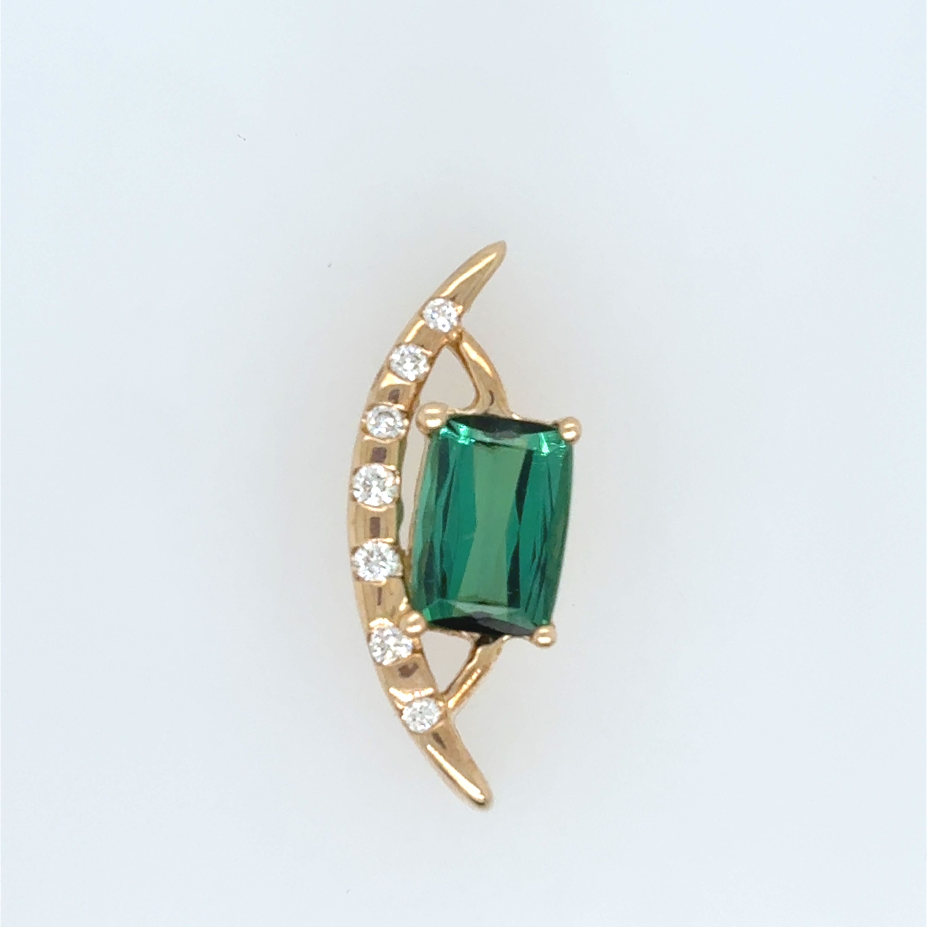 14KY EMERALD-CUT GREEN TOURM & DIAM PEND, INCLUDIN