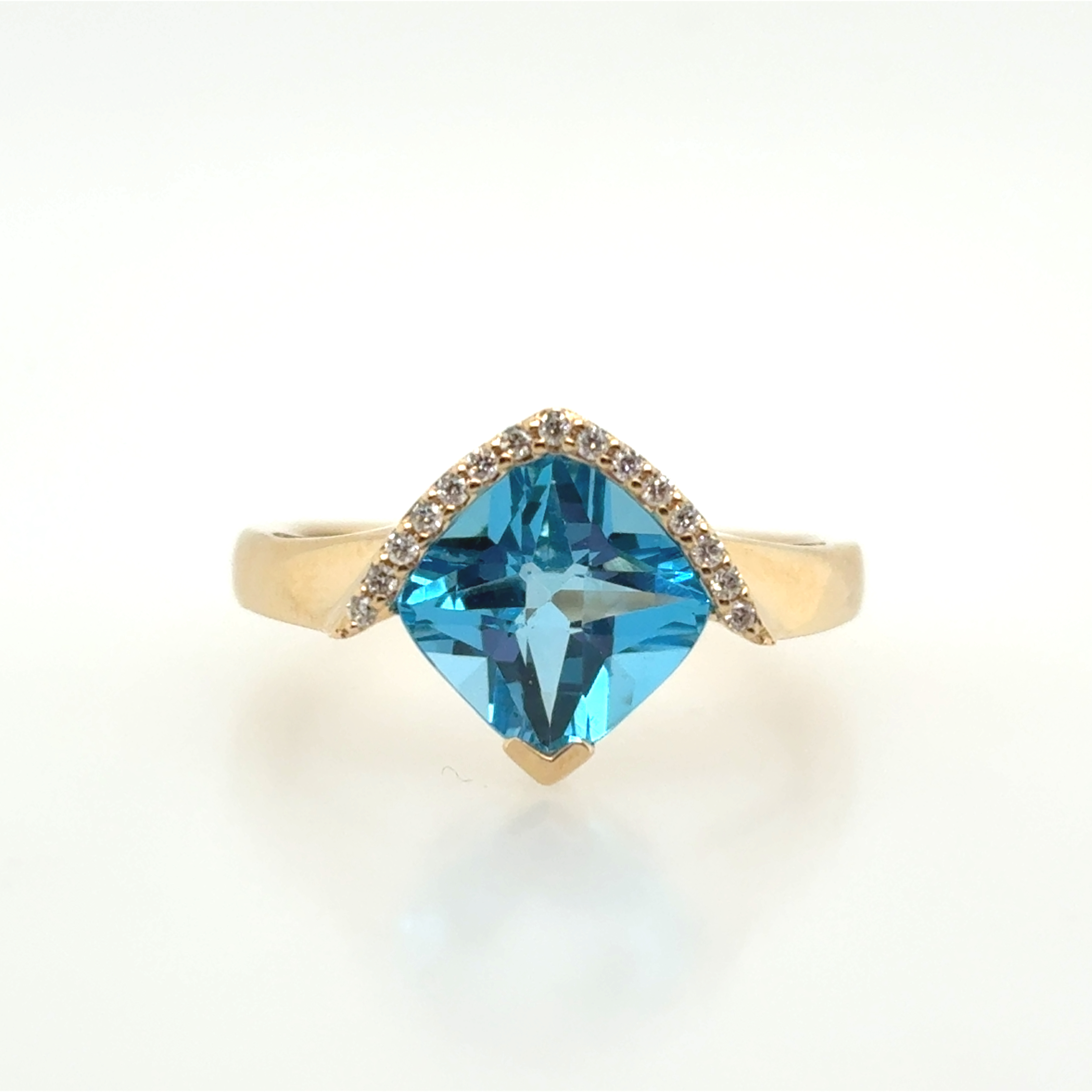 14KY CUSHION CHECKB. SW BLUE TOPAZ & DIAM, SZ7