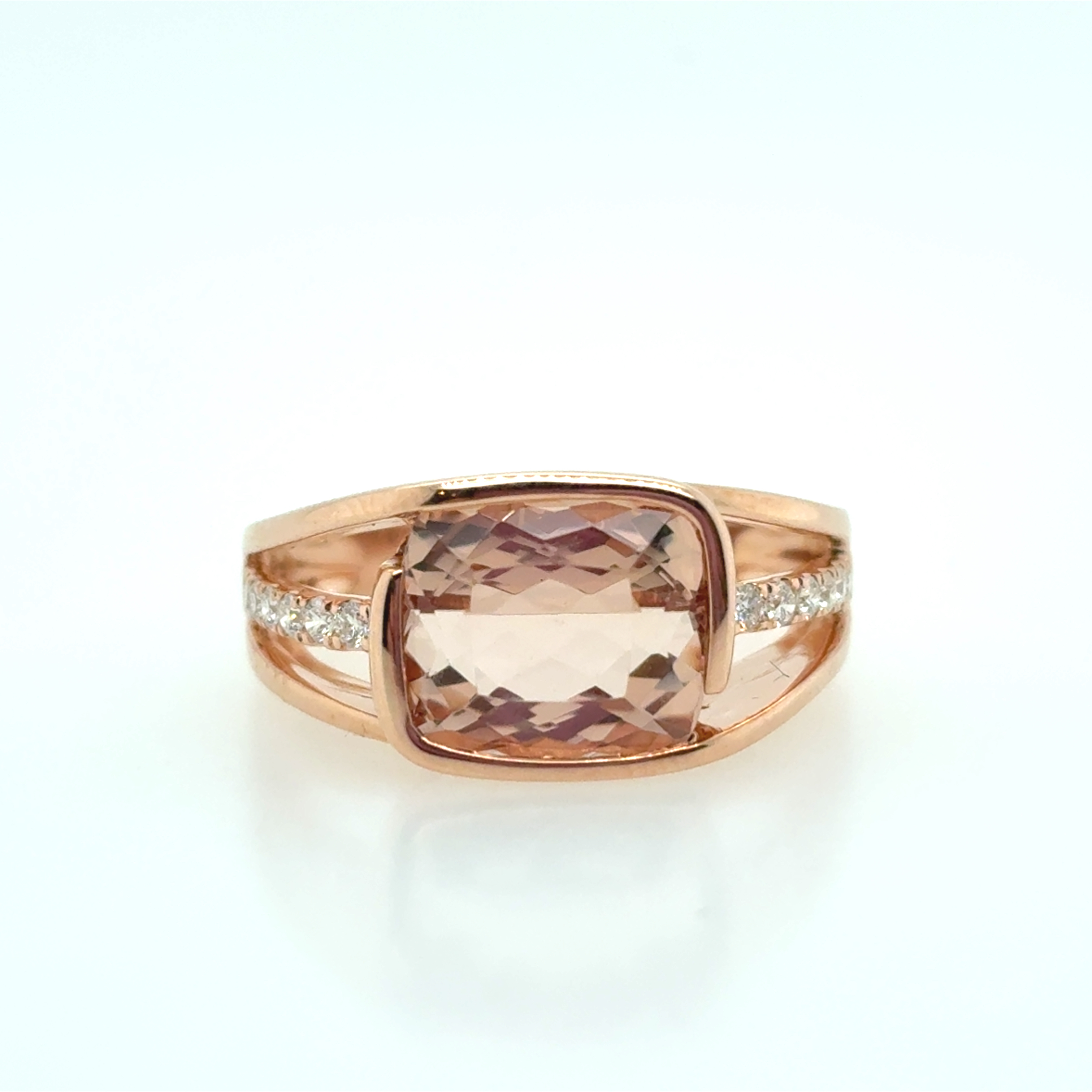 14KR ELONG. CUSH CHECKB. MORGANITE & DIAM RING, SI